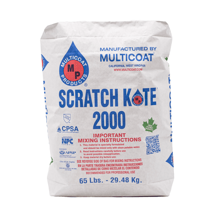 The Scratch Kote 2000 System is designed to not only bond new pool surfaces to substrates, but also to enhance the performance of that new surface during its installation, curing, and lifespan. Using large aggregate and enhanced polymer blends, Scratch Kote 2000 grips and sticks as well as resists the elements to prevent delamination. To protect your elevated pool finish, Scratch Kote 2000 is the only choice.